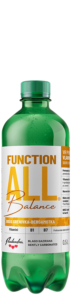 FunctionALL je inovativna linija funkcionalnih voda, osmišljena za sve one koji žele da njihovo piće bude korisno za um i tijelo, a ujedno i izvrsnog okusa. Proizvedena je od prirodne mineralne vode iz Radenske te obogaćena pažljivo odabranim prirodnim biljnim ekstraktima, vitaminima, mineralima ili drugim korisnim sastojcima koji podržavaju specifične tjelesne i kognitivne funkcije. Svaki gutljaj spaja funkcionalnost i izvrstan okus koji osvježava i revitalizira. Uvjerite se sami!